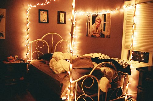 I love the mood set by wrapping the iron beds with lights. I'm ready to relax in this soft and subtle glow.